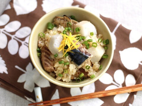 サバ缶と芋類の中ではカロリー・糖質が低めな里芋を使ったヘルシー釜飯。味噌の風味が後引くおいしさ。お好みで七味唐辛子をかけても。
