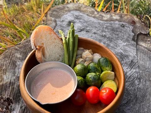 ■春野菜とベビーホタテの明太チーズフォンデュ