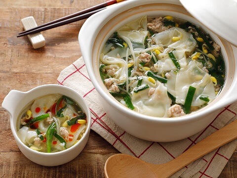 ツルっとしたのど越しがおいしいワンタン鍋。具材は包まず、ワンタンを入れるだけのお手軽さ。