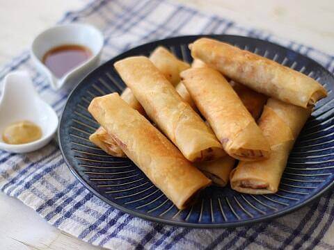 定番具材の春雨をもやしに置き換えたヘルシー春巻き。揚げ物も、「ヤマサ まる生ぽん酢」を付けていただくことで、さっぱりとした美味しさが味わえます。ビールのおつまみ、ごはんのおかずに!