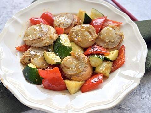■夏野菜とほたてのまる生Wおろしぽん酢炒め