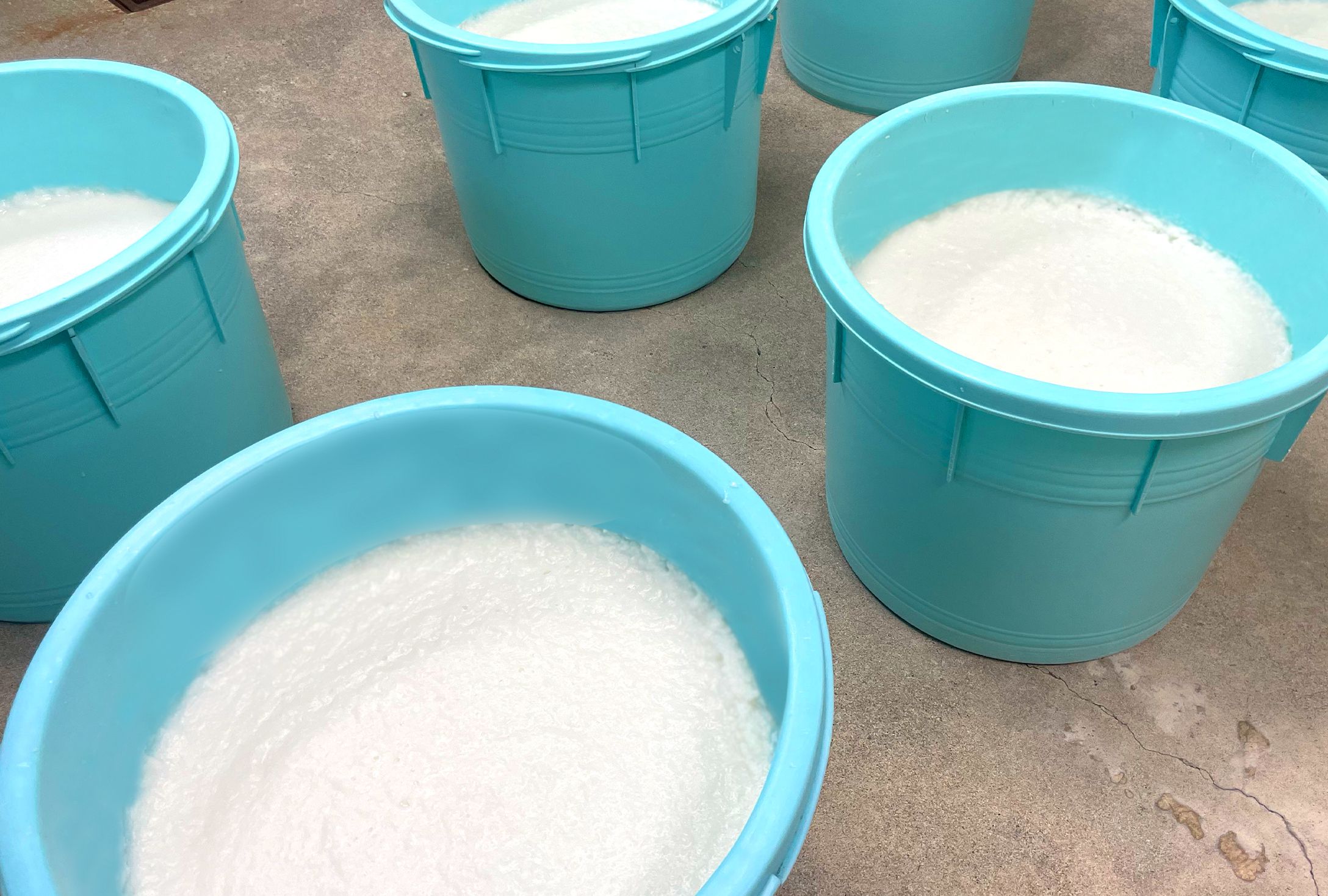- ・明朝まで寝かせて、すり機ですり潰して、容器に充填する