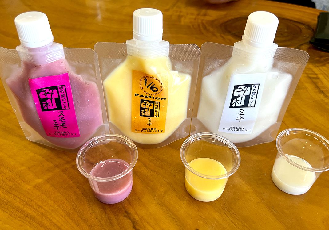 わたしたち「味の郷かさり」は、女性たちで起業したグループで、地場の農作物や水産物を加工・販売を通じ、『奄美大島の食文化の継承』を目指しています。地場で取れた農作物の加工などしているのですが、みきも作っていて、ススモ味やパッション味のみきにも挑戦したりもしています。