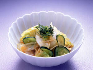 <せん切り>大根やにんじんの場合、まずは皮をむいた野菜を薄い輪切りにしましょう。そしてその輪切りを何枚か重ね、端から細く切っていけばせん切りの完成です。サラダや炒め物など幅広いお料理に使える切り方です。