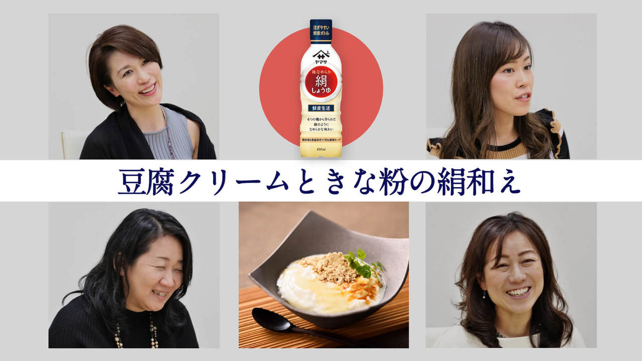 「ヤマサ鮮度生活 味なめらか絹しょうゆ」豆腐マイスター 豆腐クリームときな粉の絹和え