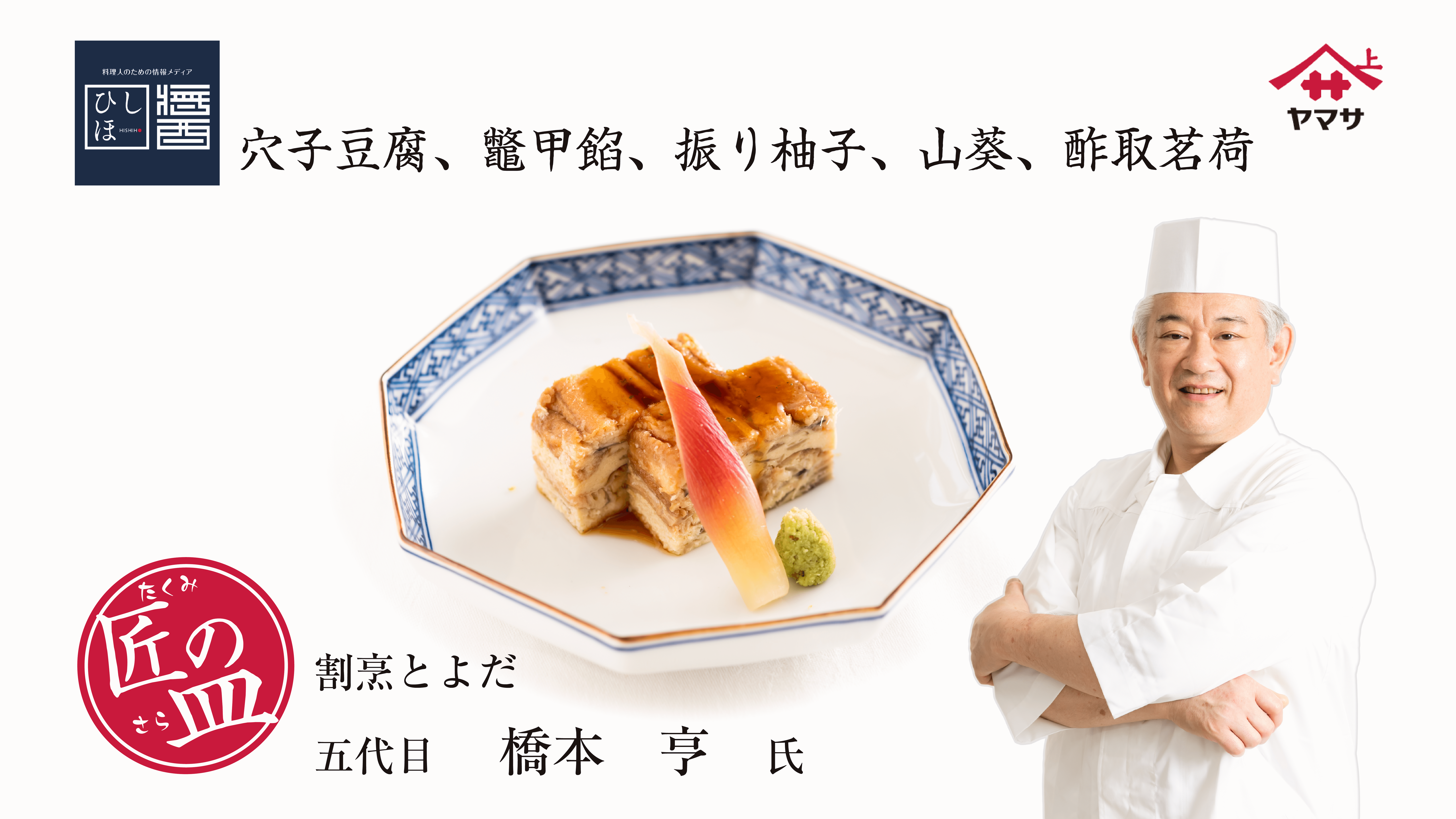 【匠の皿vol.5】割烹 とよだ 五代目 橋本 亨 氏「穴子豆腐、鼈甲餡、振り柚子、山葵、酢取茗荷」