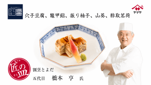 【匠の皿vol.5】割烹 とよだ 五代目 橋本 亨 氏「穴子豆腐、鼈甲餡、振り柚子、山葵、酢取茗荷」