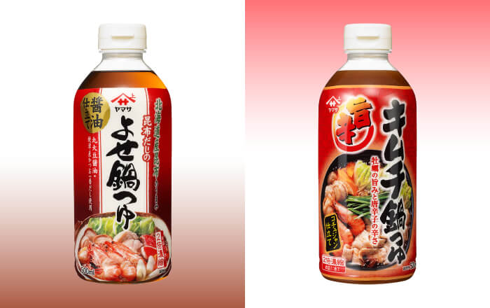 ヤマサのボトルタイプの鍋つゆは全2種類。定番のしょうゆから、ちゃんこやキムチ味までバリエーション豊かな味わいが特徴。さぁ、今夜はどちらの鍋つゆで楽しみますか?各商品のイチオシおすす...