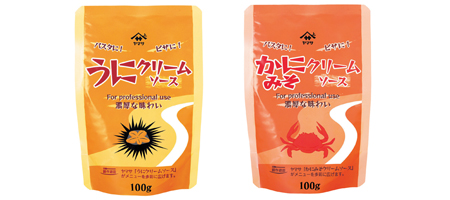 ヤマサ醤油株式会社では、2008年秋の業務用新商品として、『ヤマサ うにクリームソース』100gパウチと『ヤマサ かにみそクリームソース』100gパウチ、2品のレトルトパウチ商品を2008年8月20日(水)より全国で発売いたします。