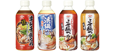 ヤマサ醤油株式会社では、定番の味の鍋つゆボトルタイプシリーズ4商品、『ヤマサ キムチ鍋つゆコチュジャン仕立て』500mlパック、『ヤマサ 浜鍋つゆ海鮮塩仕立て』500mlパック、『ヤマサ 昆布だしのよせ鍋つゆ醤油仕立て』500mlパック、『ヤマサ 昆布だしのよせ鍋つゆ味噌仕立て』500mlパックは、お客様の手にとっていただくよう、おいしそうな鍋のシズル画像を目立つように配置したパッケージデザインに刷新いたします。