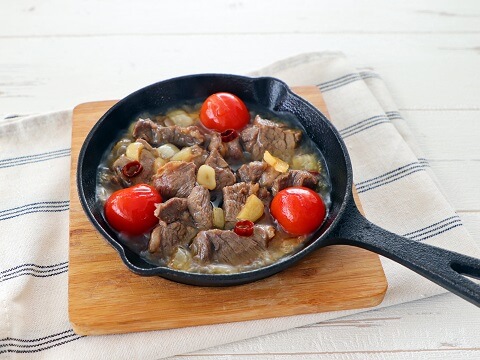 にんにくしょうゆ香る!牛ステーキの黒アヒージョ