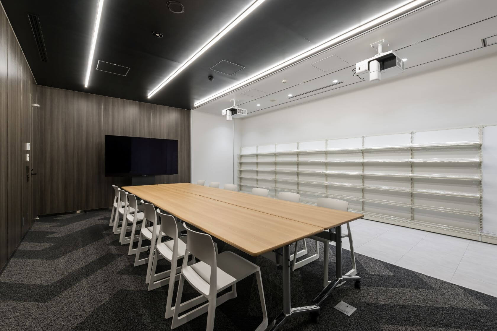 小売業様の棚割りシミュレーションが可能な陳列棚と大型プロジェクターを備えた部屋など、複数のタイプを備え、お取引先様に合わせたご提案が可能です。