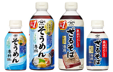 さらに、ロングセラーのストレートつゆ商品『ヤマサ そうめん専科・ざるそば専科』500mℓ・330mℓパックを、 よりおいしくリニューアルいたします。 また、『ヤマサ そうめん専科・ざるそば専科』500mℓの商品パッケージには、「そうめんつゆ・ざるそばつゆ全国売上No.1(※)」の表記を2025年2月下旬より追加いたします。