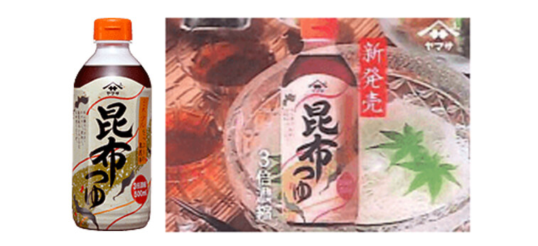 1997年の発売当時、めんつゆ市場はかつおだしが主流でしたが、「ヤマサ 昆布つゆ」は昆布だしのまろやかさを活かすことで、めんつゆとしての利用に留まらず、調理用途にも適した汎用性の高い商品として開発。以来、「元祖汎用つゆ」として、多くのお客様にご愛用いただいております。