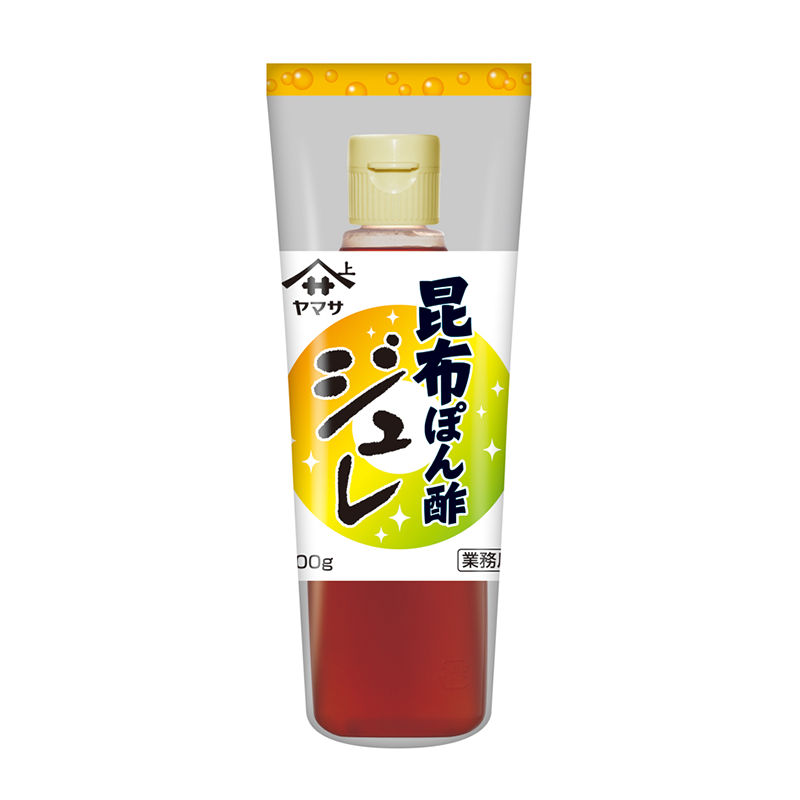 いつもの料理にかけるだけでキラキラしてぷるぷるの食感が楽しめるジュレです。昆布だしのやわらかいうま味とさわやかな柑橘感、そして、うす色しょうゆを使用した明るい色合いです。メニューに盛り付けしやすい、ほど良い固さになってます。(出す量の調整が容易なワンタッチキャップの注ぎ口)