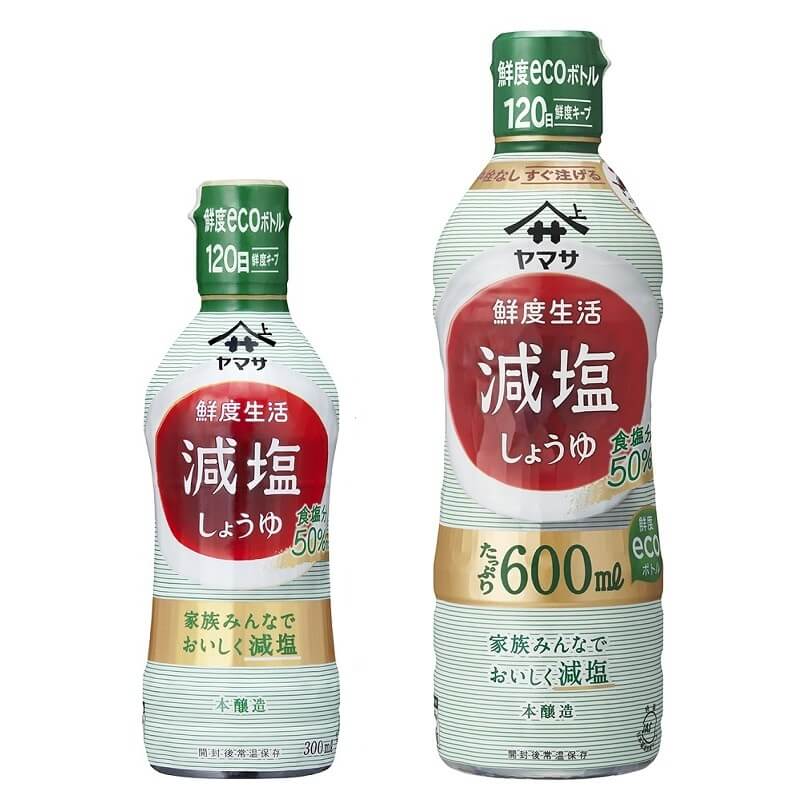 「本醸造ヤマサしょうゆ」の風味はそのままに、塩分を約半分に減らしました。