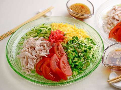 「昆布ぽん酢」で作った、冷やし中華風のタレが、さわやかでうま味たっぷり!