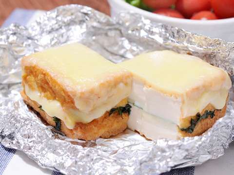 カリっと焼けた厚揚げとチーズの組み合わせに「ヤマサ昆布ぽん酢 スーパーマイルド」の柔らかい酸味がベストマッチ!お好みで山椒や七味をかけると、ビールのおつまみにもおすすめです♪