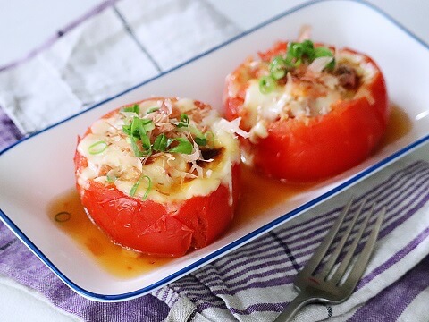 トマトをホイル焼きにしてじっくりと火を通すことで、トマトの味わいを引き出します。仕上げに「ヤマサ昆布ぽん酢」をたっぷりかけて昆布の旨味とさわやかな酸味をプラスしていただきます。