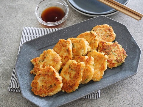 すりおろしたレンコンにはんぺんを加えて、食感のふわふわ度アップ!タネに入れた塩昆布の塩味がいいアクセントのレンコンもちです。