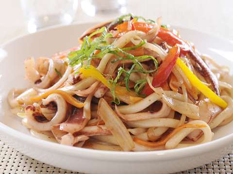 ■夏バテ解消!イカと抗酸化野菜の梅しそ昆布焼きうどん