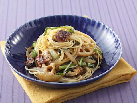 夏のスタミナ食材として人気なうなぎを和風パスタにアレンジ。「ヤマサ昆布ぽん酢」と味噌を合わせたソースがうなぎとよく合います。仕上げに山椒をふり、ピリッとした刺激とさわやかな香りをプラス。