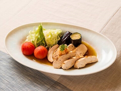 鶏肉をたっぷりの野菜と一緒に「ヤマサ昆布ぽん酢」で煮込んだ夏らしいおかず。フライパンで鶏肉の皮目を焼いて、出てくる油を取り除くことで、よりさっぱりとした味わいになります。