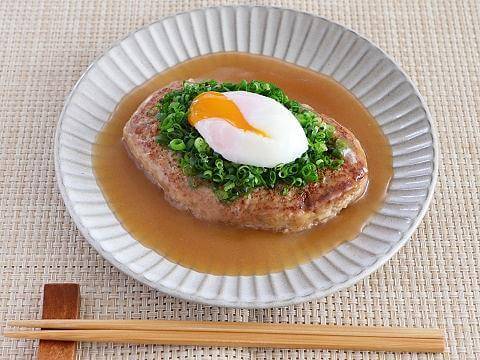 とろ~りとしたあんに浮かぶ、豆腐多めのふわふわハンバーグ。「ヤマサ昆布ぽん酢」と砂糖でハンバーグを照り焼きにし、残った煮汁に水溶き片栗粉を加え、あんを作ります。