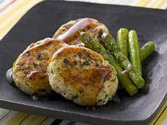 ■豆腐と鶏ひき肉のつくねと焼きアスパラのぽん酢あんかけ
