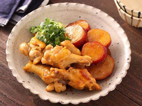 「ヤマサ昆布ぽん酢」の旨味と酸味で、手羽元がホロホロになる絶品の煮物に。さつまいもの甘みも引き立って、食べ応えも十分なレシピ!