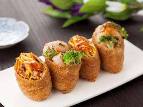 秋の行楽やおもてなしに喜ばれる変わりいなり寿司。見た目の華やかさはもちろん、食べやすいのもポイント。寿司飯は「ヤマサ昆布ぽん酢」を使えば簡単にできます。