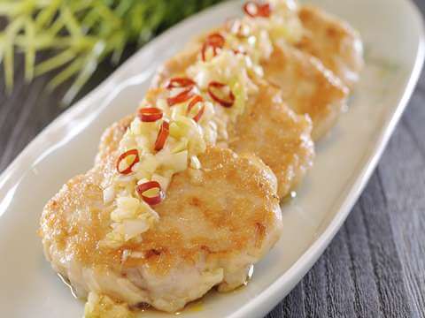 鶏ひき肉に、粗みじん切りにした豚もも肉を入れ食感をプラスした、食べ応えバッチリなつくね。たっぷりの長ねぎのみじん切りに「ヤマサ昆布ぽん酢」、おろしにんにく、こしょうを加えた”ねぎソース”でさっぱりといただきます。