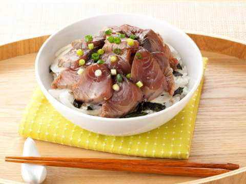 秋においしい戻りがつおを主役にした簡単丼。ポイントは「ヤマサ昆布ぽん酢」の照りソース技!「ヤマサ昆布ぽん酢」を鍋に入れ中火にかけ、とろみがつくまで煮詰めたソースをかつおと絡めれば、さわやかさとうま味が調和した極上の味わいに。