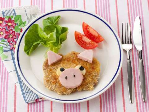 トンカツが、かわいい豚さんに♡ 豚肉を「ヤマサ昆布ぽん酢」に半日漬けてから焼くと、お酢のはたらきでやわらかく仕上がります。後は揚げずに、油をひいたフライパンで焼くだけ。