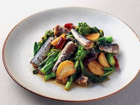 ■オイルサーディンと菜の花のイタリア風炒め煮
