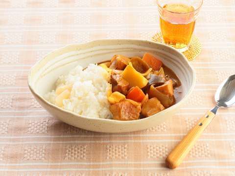 「ヤマサ昆布ぽん酢」とりんごのすりおろしが入ったカレーは、さわやかなやさしい酸味で、カレーの辛さを和らげてくれ、食べやすい味わいに仕上がります。
