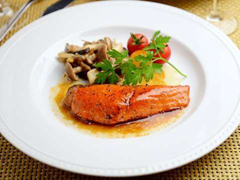 「ヤマサ昆布ぽん酢」×バターで作ったマイルドな酸味のソースが鮭とベストマッチ。お魚が苦手のお子さんでも食べやすい味わいです。洋風ですが、白いご飯にもよく合います。