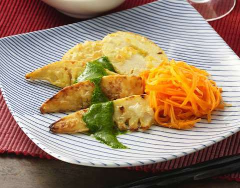 筍が主役級に!こんがりと焼いてステーキにし、大葉を使った和DEミックスなジェノベーゼソースでいただきます。ソースは多めに作って、パスタソースにアレンジしても楽しめます。