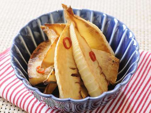オリーブオイルで焼いた筍を「ヤマサ昆布ぽん酢」でマリネするだけの簡単ピクルス。ピリっと効かせた唐辛子がアクセント。