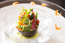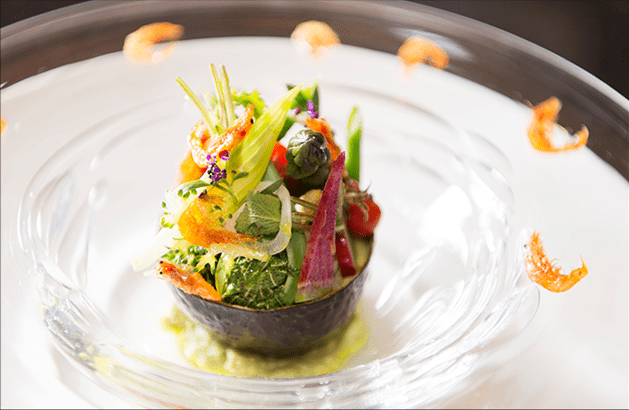 五感より想像される氏の料理は、数々の勲章・栄誉を受け、料理界、食通の間で