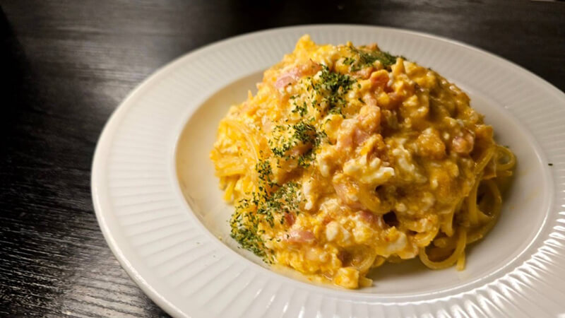 「ヤマサ ぱぱっとちゃんと これ!うま!!つゆ」の出汁の旨味を最大限に使った、最高傑作のぺぺたま!程よい甘味があり、出汁の味わいと香りも豊かな「ヤマサ ぱぱっとちゃんと これ!うま!!つゆ」は、和風の卵パスタにすごくよく合います。