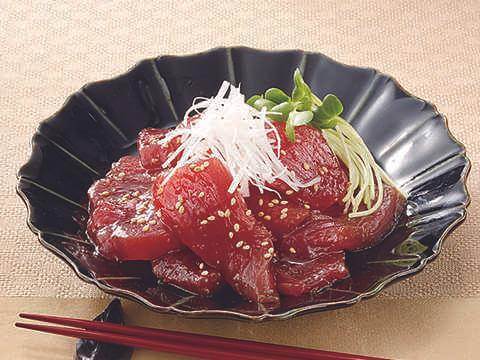 にんにくじょうゆ香る、マグロの漬け。ごま油とラー油も効かせて、中華風にアレンジ。