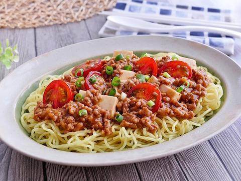 麻婆豆腐と焼きそばの両方が一度に楽しめる麻婆焼きそば♪麻婆あんは「ヤマサ鮮度生活 特選丸大豆しょうゆ」を使い、香り良くコクのある味わいに。トマトを加えることで、暑い日もさっぱりといただけます。