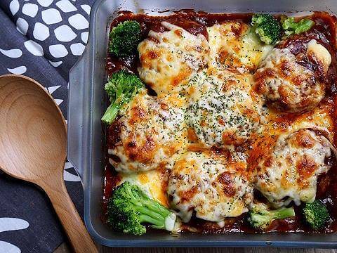 炊飯器で炊き上げる、ユニークなハンバーグ!タネとソースの両方に「ヤマサ鮮度生活 特選丸大豆しょうゆ」を使い、風味豊かな味わいに。BIGサイズのハンバーグに食卓も盛り上がり、ホームパーティーにもおすすめです。