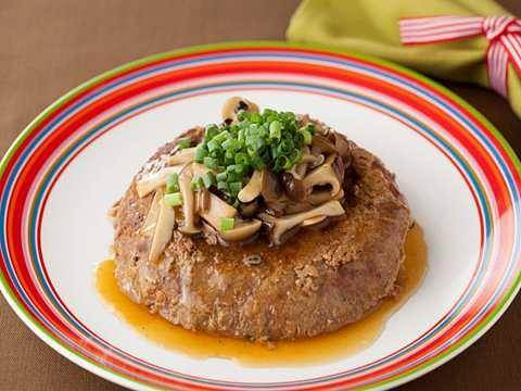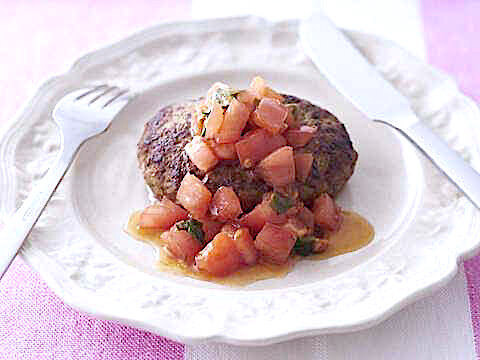 「ヤマサ鮮度生活 減塩しょうゆ」と相性のよいトマトを使った、さっぱりとした和風ソースのハンバーグ。トマトのうま味と、さわやかなしその香りで味に広がりがあり、減塩でも薄味に感じないヘルシーな味付けです。