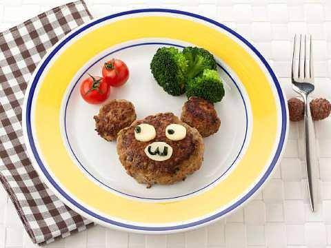 かわいい表情がたまらない、くまさんハンバーグ♪ タネに入れた「ヤマサ鮮度生活 特選丸大豆しょうゆ」が、ハンバーグのうま味を引き出します。お子さんと一緒に作るのも楽しい一品。