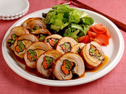 昆布を鶏肉の内側に入れて巻いた、いつもとひと味違う昆布巻き。切った断面も華やかで、お祝いの食卓にぴったりです。