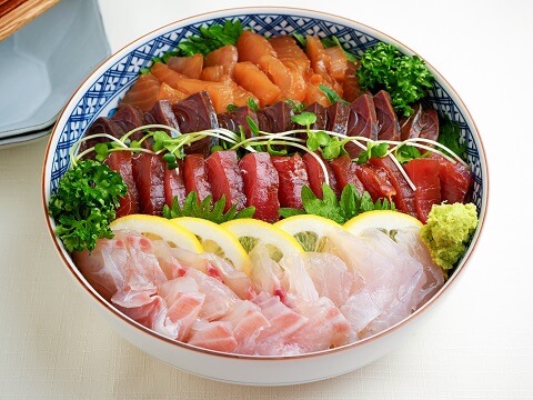 「ヤマサ鮮度生活 特選丸大豆しょうゆ」で漬けにしたお刺身を彩りよく並べた、お正月感満載な豪華なお寿司!
