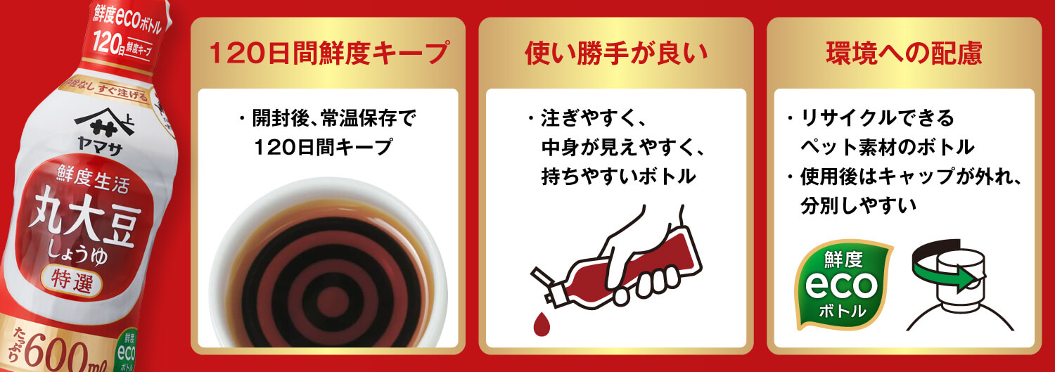 「ヤマサ 鮮度生活」は、シリーズ全5品にリサイクル可能なペットボトル「鮮度ecoボトル」を使用し、味わいのおいしさと共に環境へも配慮した商品です。...