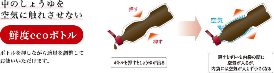 料理に合わせてしょうゆを使い分けたいという方にも、「鮮度ecoボトル」300mlは使い切りやすいちょうどよいサイズ感です。